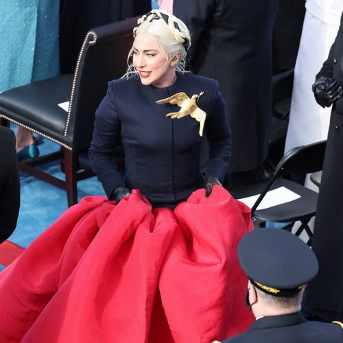 Back in January, the Born This Way singer opted for a dramatic Schiaparelli couture gown featuring a large gold dove on the bodice to sing the national anthem during the ceremony held on the West Front of the U.S. Capitol in Washington, D.C.